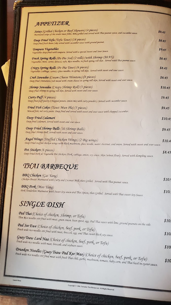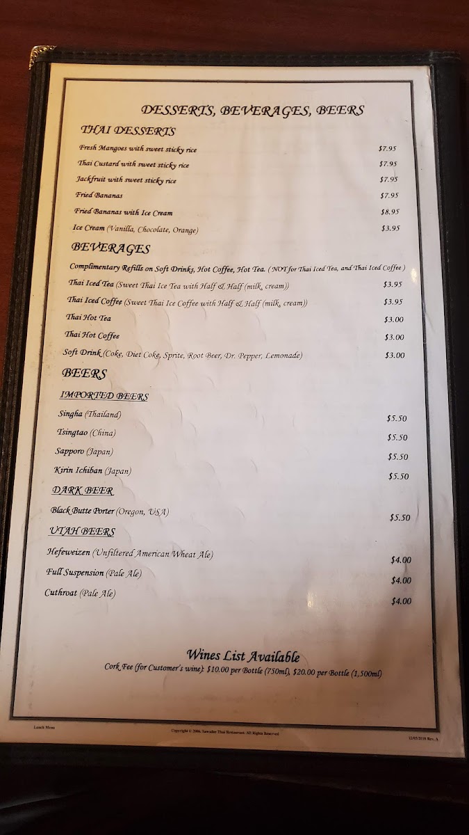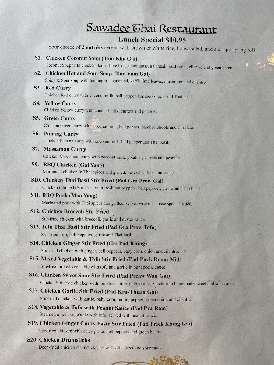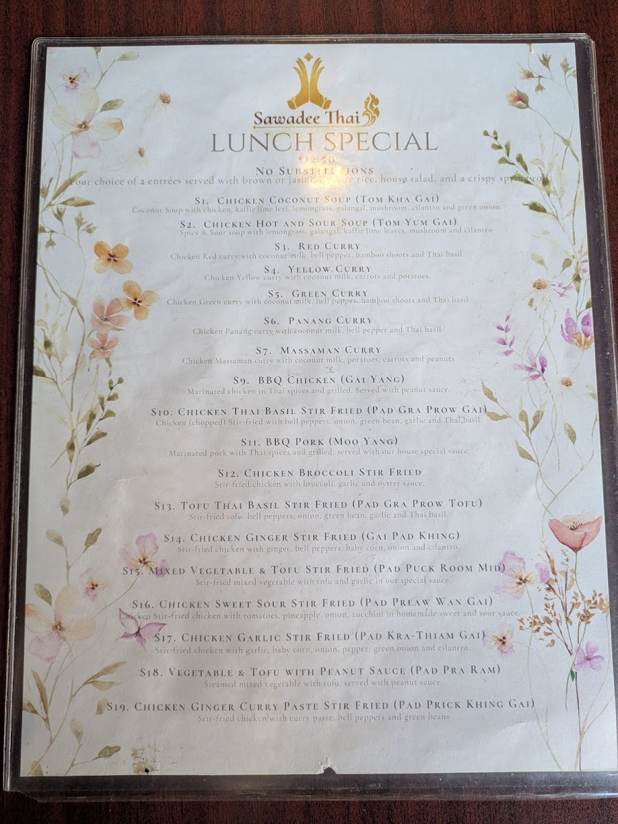 Sawadee (Utah) Thai Restaurant Menu